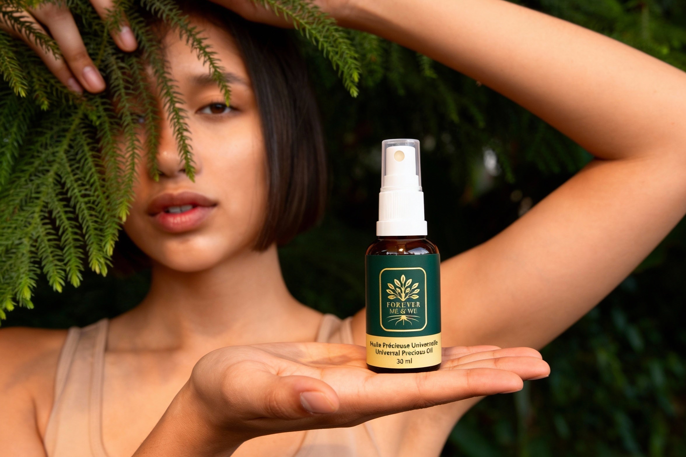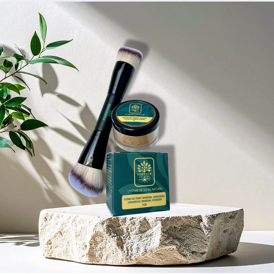 "Je partage mon secret d'une belle peau avec vous, le Fond de teint minéral Forever Me & We, utilisé seul ou mieux, en synergie avec l’Huile précieuse universelle et l’Eau florale universelle, offre un résultat optimal et professionnel hyper lumineux en un temps record."